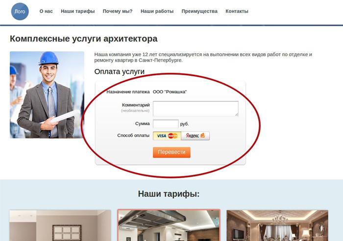 Теперь этот вопрос решён: стало возможно проведение онлайн-платежей и с банковских карт (Visa, MasterCard), и с помощью электронной валюты Яндекс.Деньги. Ещё раз отметим: речь не идёт об Интернет-магазинах, где нужный функционал подключен изначально. Речь об обычных сайтах, которым может быть интересен приём платежей от клиентов для ускорения процессов сделок.