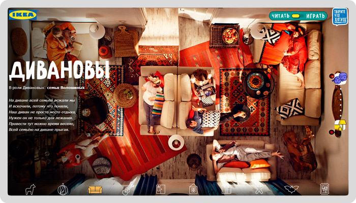Шикарный пример представила Икея при помощи писателя Григория Остера: http://kvartirovedenie.ru/sobiralovy/general