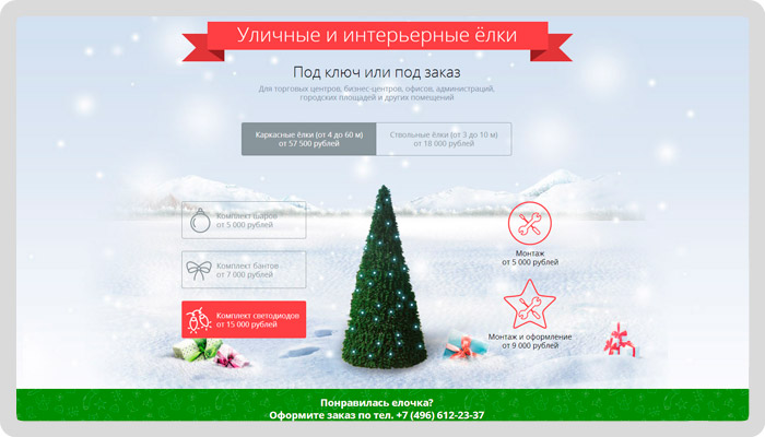 Данный проект, безусловно, стоит не малых денег, но есть и более простые решения, включающие элемент игры. Например, лэндинг, который разрабатан для компании «Русская Ёлка» – http://rus-elka.hostim.ru/