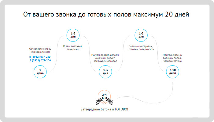 Просматривая такой информационный блок, пользователь как бы заранее проживает весь процесс, и принять решение ему значительно легче. Ну а указание сроков каждого этапа делает длительный процесс понятным, и срок уже не кажется таким долгим.