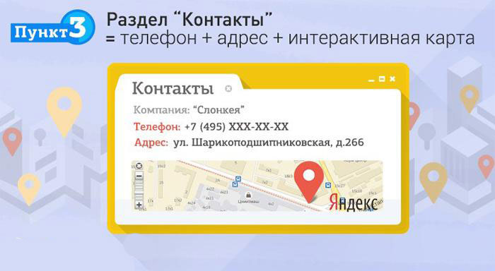 4) Динамическая карта (схема проезда) в раздел "Контакты" (2gis или yandex карты) - 0 руб.