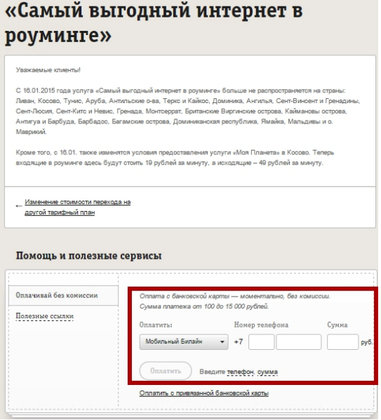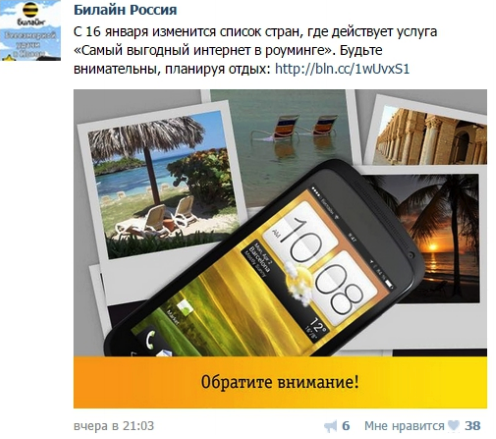 Beeline в своем сообществе «ВКонтакте» информирует участников об изменении условий предоставления услуги, указана ссылка на сайт.