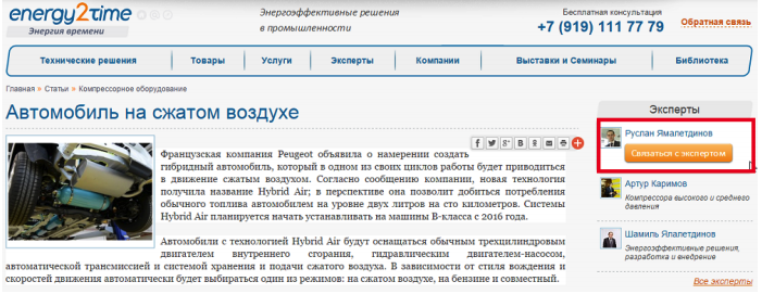 Если на вашем сайте есть раздел со статьями, дайте возможность посетителю узнать больше, чем раскрыто в материале. Это особенно важно, если продукт сложный и обладает многочисленными техническими характеристиками. Так посетитель перейдет из информационного пространства, ограниченного одной статьей, в продающее — к заинтересованному лицу, эксперту. Пример с сайта Energy2Time: