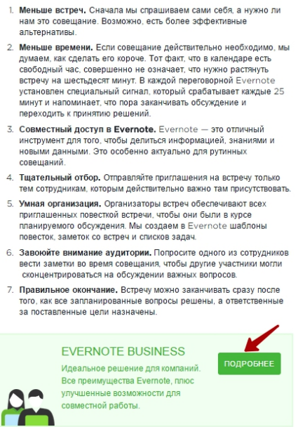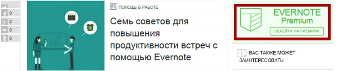 В блоге продукта для организации рабочего пространства и времени Evernote в конце каждой записи есть предложение узнать больше именно о нем.