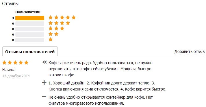 Подкрепите текстовые отзывы рейтингом товара, который выставляет каждый автор отклика. Пример с сайта mvideo.ru: