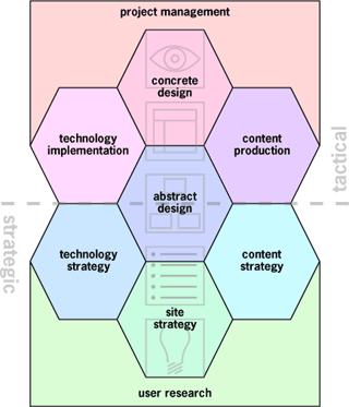 5. Абстрактный дизайн: с помощью информационной архитектуры и дизайна интерактивности стратегические цели превращаются в концептуальную схему, определяющую то, как пользователь будет работать с сайтом. Эти новые дисциплины завоевывают все большее признание среди веб-разработчиков, как неотъемлемые части процесса.