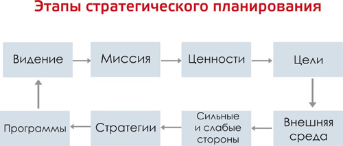 Подготовка стратегического плана многоступенчатый процесс, охватывающий видение, миссию, ценности, стратегии, цели и программы. Эти вопросы обсуждаются ниже.