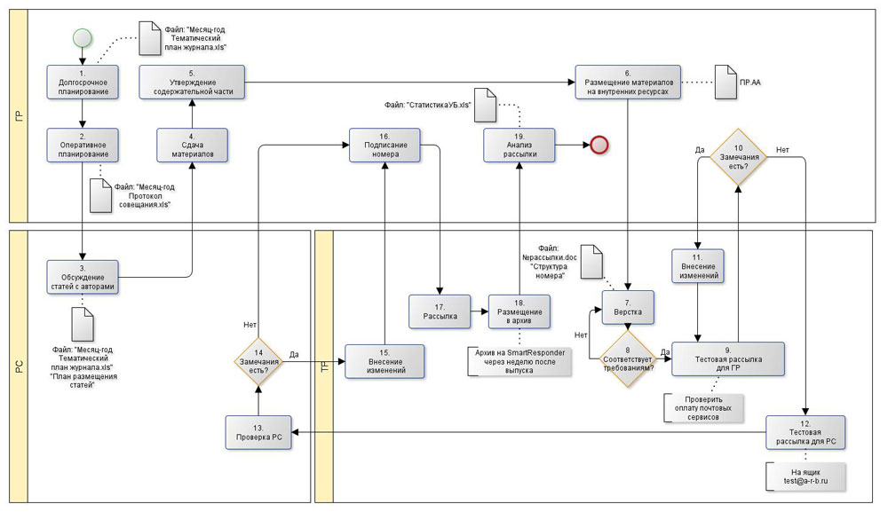 - Основные процессы организации. Основной процесс организации — это совокупная последовательность действий по преобразованию требований внешнего потребителя (клиента), полученных на входе, в конечный продукт, имеющий ценность для внешнего потребителя, на выходе. Обычно, это такие процессы СМК как «Выпуск готовой продукции», «Обработка заказа», «Оказание услуг» и т.д. Например, для нашей компании одним из основных бизнес процессов СМК является «Выпуск рассылки электронного журнала «Управляй будущим».