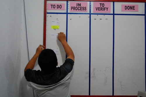 Прозрачность всех действий и процессов обеспечивает скорейшее достижение цели. Наиболее распространенный способ добиться этого — завести скрам-доску с колонками: «Нужно сделать, или бэклог»; «В работе»; «Сделано». Стикеры — это пользовательские требования, которые нужно реализовать; по мере того как они выполняются, команда перемещает стикеры из одной колонки в другую.