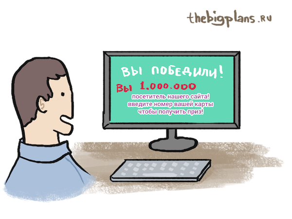 Вам сообщают, что вы выиграли в лотерею, но нужно перевести небольшую сумму на оформление, пересылку, административные расходы.