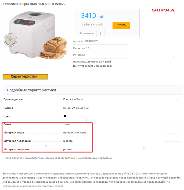 А вот ещё пример невнимательного заполнения карточки товара: