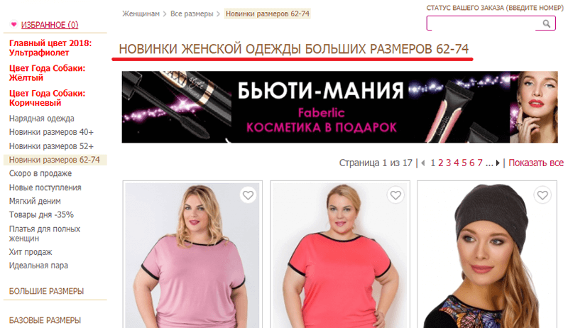 Понятно лишь одно − предлагается одежда больших размеров. Во-первых, понятие «большой» у всех разное, во-вторых, кто сказал, что вы наверняка найдёте тут тунику? А вот если добавить немного текста и расписать, что предлагает интернет-магазин, ситуация сразу же прояснится.
