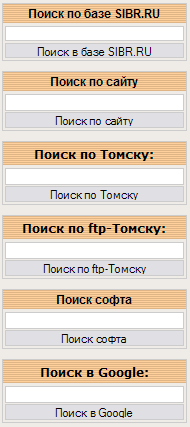 Эта поисковая форма в отличие от предыдущей исключает возможность одновременного поиска по нескольким категориям. Но ищущий от этого ничего не теряет, т.к. представленные категории не пересекаются. Т.е. человек, который ищет в базе справочника предприятия, занимающиеся пищевой промышленностью не нуждается в одновременном срочном поиске софта. Наименования категорий ftp и Google заменены наименованиями файлы и интернет соответственно. Возможно, сайт посетит тот, кто с интернетом пока на «Вы».