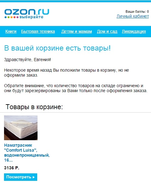 Здесь вам очень пригодится тот e-mail, который вы получили от клиента, не завершившего покупку в вашем интернет-магазине. Повод для письма у вас уже есть. Так поступают в Rozetka.ua.