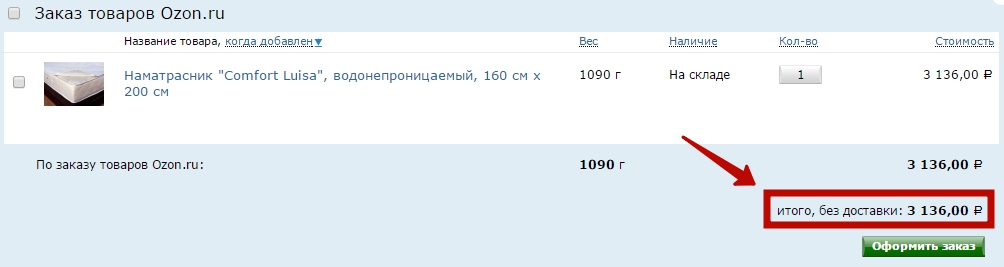 Если в стоимость не входит доставка, уточняйте это еще до оформления заказа. Пример с сайта Ozon.ru.