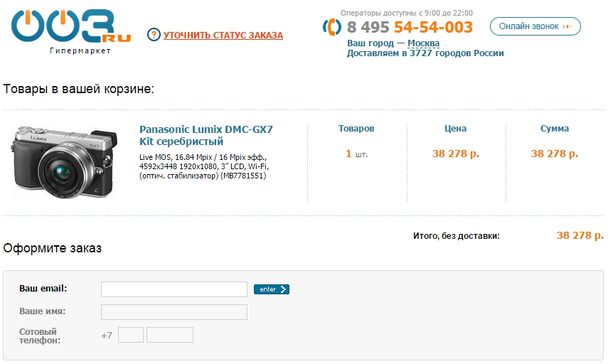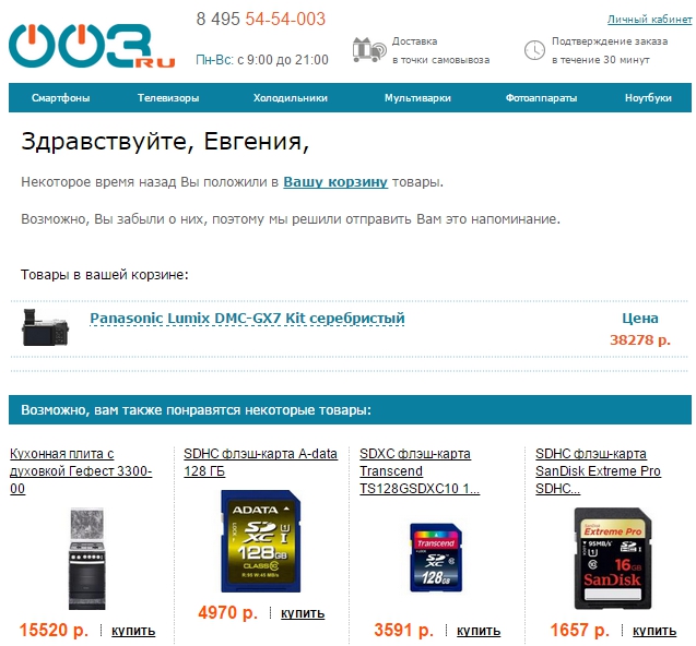 Письмо с темой «Ваша корзина ждет вас на 003.ru» содержит также рекомендации на дополнительные покупки.