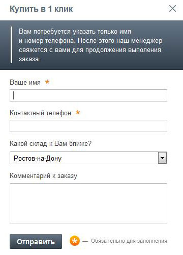 Форма заказа должна быть максимально простой. Достаточно спросить имя, телефон и адрес доставки. Более детальную информацию можно выяснить позже. Сложная форма заказа отпугивает посетителей.