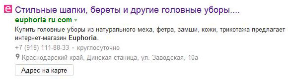 Добавьте свой онлайн-магазин на карты Яндекса и Google, информация о нем будет показываться не только на самих картах, но и в сниппетах в поисковой выдаче. Это принесет дополнительный трафик.