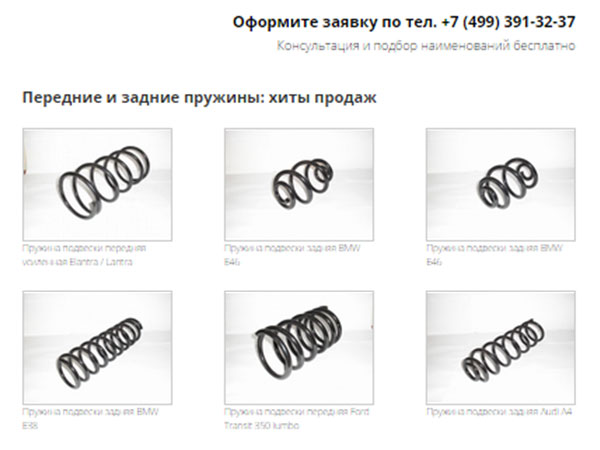 На первом экране (экран, который видит пользователь до того, как начнет прокручивать сайт вниз) обязательно должны быть представлены несколько превью карточек товаров вашего магазина.