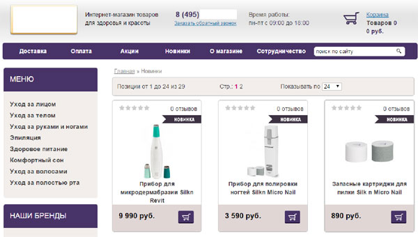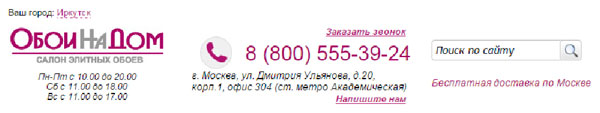 Из шапки сразу ясно, что магазин в Москве и что можно заказать товары в Иркутск (пометка «Ваш город: Иркутск» – определение географии по IP)