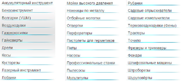 Каталог, сложный для восприятия. Лучше укрупнить хотя бы по назначению: «Строительство и ремонт», «Дом и сад»