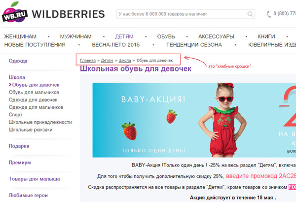 Следует продумывать навигацию по сайту и реализовывать ее таким образом, чтобы посетитель на любой странице видел, где находится. Походите по страницам своего сайта и проверьте: всегда ли в меню показано, где вы находитесь; есть ли у страниц понятные и большие заголовки; корректно ли работают «хлебные крошки» (пример отличных хлебных крошек на всем известном интернет-магазине wildberries.ru, присмотритесь).