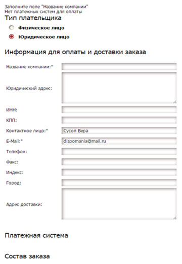 Ошибка «Нет платежных систем для оплаты» непонятна: их нет доступных для выбора. При тестировании не удалось завершить заказ от юридического лица. Непонятно, как обойти эту ошибку формы, она не дает оформить заказ