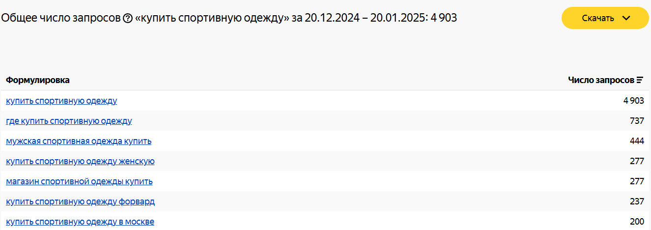 Искать ключи можно в бесплатном сервисе «Вордстат» от Яндекса — нужно ввести фразу, и инструмент выдаст релевантные запросы и семантически связанные слова.