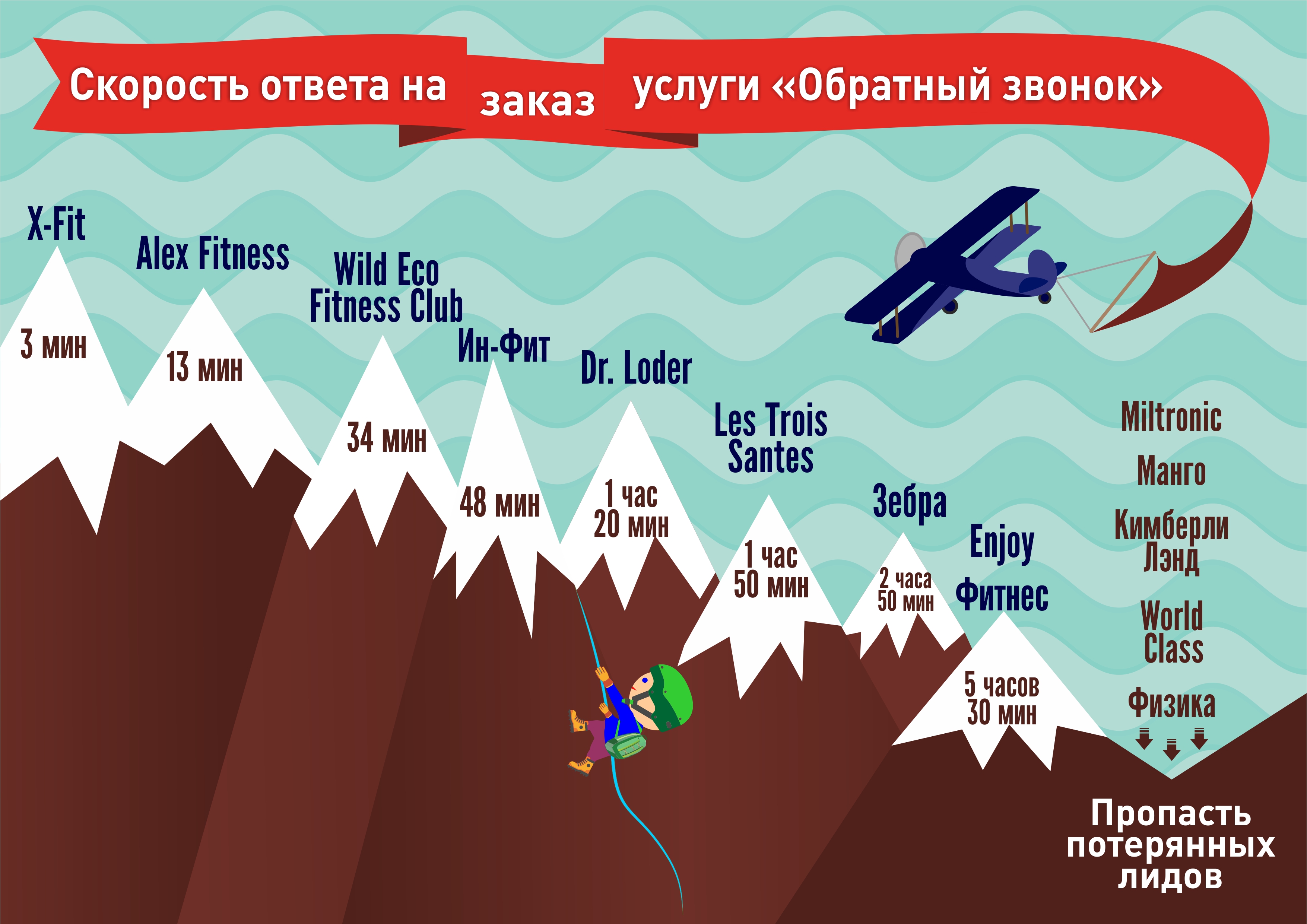 На всякий случай будьте готовы попасть в исследование сервиса вашего бизнеса. Например, один ресурс решил провести исследование о том, как работает «Обратный звонок» на сайте и опубликовал результаты. Пожалуй, рады были не все. И это говорит о том, что нужно «подтягивать» сервис и качество взаимодействия с клиентом каждого сотрудника. На сайте есть аудитория каждого из приведенных фитнес-центров, и от того, что она увидит, будет зависеть желание купить абонемент в тот или иной зал.