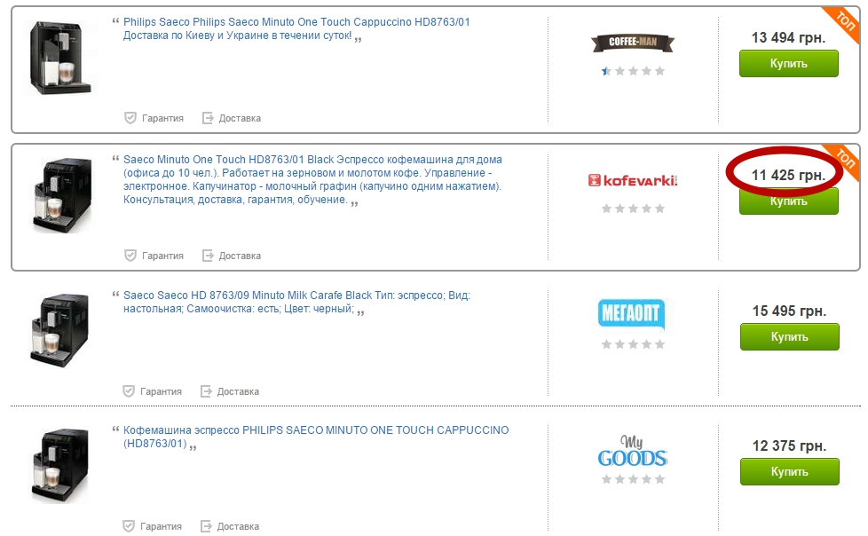 Самое простое — это низкая цена. Особенно это важно на сайтах-агрегаторах. Здесь важно следить, чтобы цена была актуальна, иначе гнева несостоявшегося клиента не избежать. Пример с сайта price.ua.