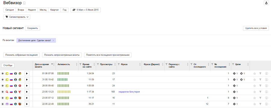 Вебвизор в Метрике 2.0: фильтр по достижению цели