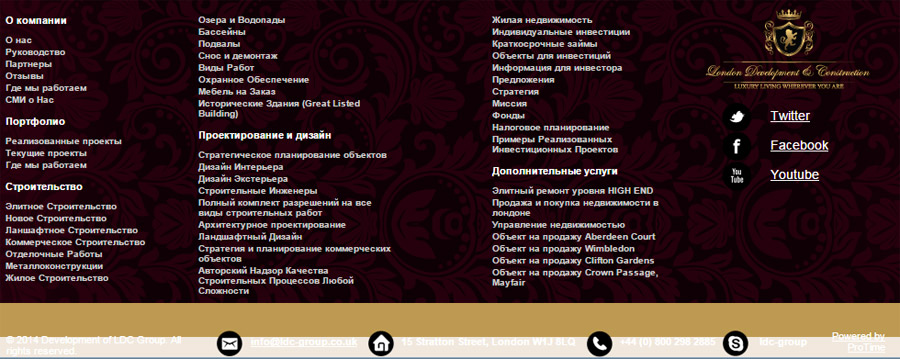 Спустившись в самый низ страницы, оцените подвал сайта. Желательно, чтобы в подвале были ссылки на основные разделы сайта и была заметно оформленная контактная информация.