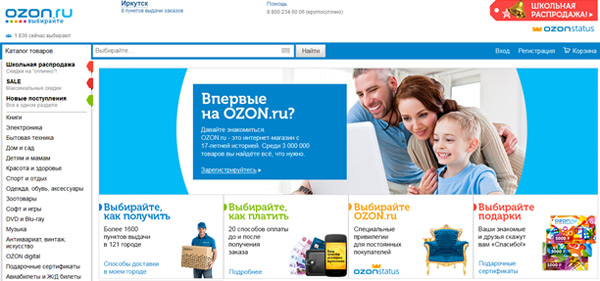 Ozon.ru – интернет-магазин, где вы найдете все, что только душа пожелает: начиная от книг и столовых приборов, заканчивая билетами и подарочными сертификатами. Думается, что среди 3 000 000 товаров, представленных на сайте, хотя бы один, но западет вам в душу. Также покупателям нравится OZON за удобство сайта, понятный интерфейс, информативную карточку товара, большой выбор способов доставки и оплаты. Конечно, немаловажен и тот факт, что сайт обладает высокой степенью доверия, но это и не удивительно, ведь он на рынке уже 17 лет.