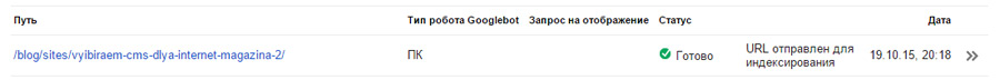 И вуаля, URL отправлен для индексирования, и в скором времени будет добавлен в базу: