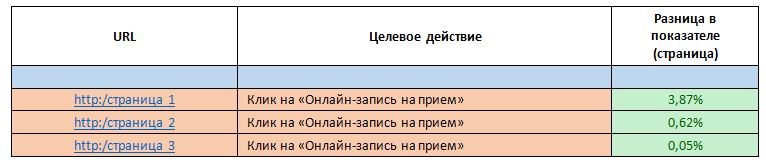 Для мини-эксперимента мы взяли три страницы на сайте центра психотерапии и психологии. Существующие тексты были заменены новыми или серьезно отредактированы с учетом данных анализа аудитории по Яндекс.Метрике и принципов написания по модели AIDA. Ниже представлены краткие итоги эксперимента. Обращаю внимание, что выборка действительно небольшая, однако и она показательна с учетом узкоспециализированной направленности сайта в целом.