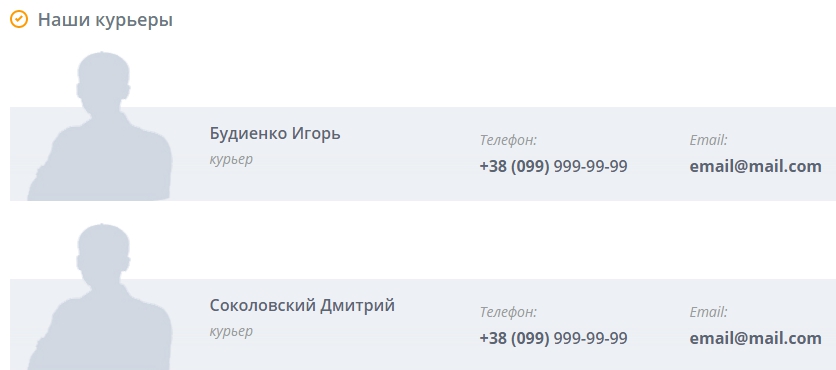 Курьеры. Вы можете уделить внимание тому, какие курьеры у вас работают, указать фото, имя и фамилию. Это может быть важно, если вы занимаетесь продажами товаров, требующих бережного и ответственного отношения. На сайте по продаже линз Likon.com.ua задумали подобное, но не реализовали до конца: