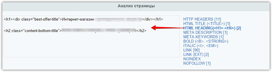 Крайне полезная вкладка для анализа данных в seo-тегах (например, h1-h6) находится в меню редактирования страницы. Вы всегда можете проследить, какая информация нуждается в замене.