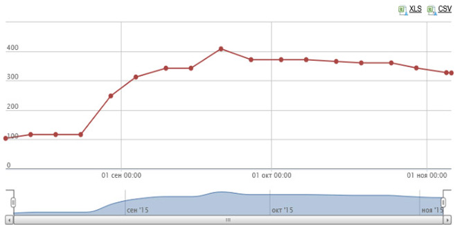 Возьмем сайт проектно-технологического бюро, который мы регистрировали в каталогах 30 июля 2015 года. Вот такую картину по ссылкам показывает Яндекс.Вебмастер: