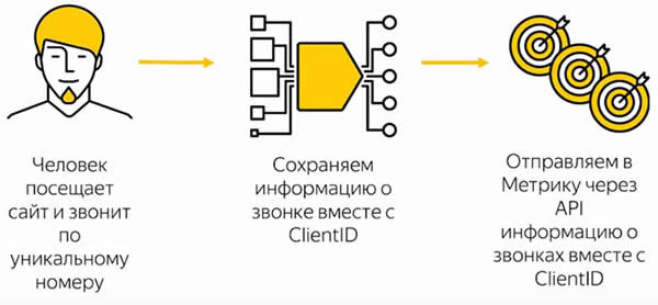 Целевой звонок Яндекса тоже фактически является системой кол-трекинга. В его основе лежит технология подмены номеров, когда для каждого канала работает отдельный набор цифр. Есть и более сложные системы, в которых номер закрепляется не за конкретным каналом, а на время за неким уникальным пользователем. В результате этого можно получить детализированные статистические данные (точка входа на сайт, историй визитов, звонков, устройство входа, браузер).