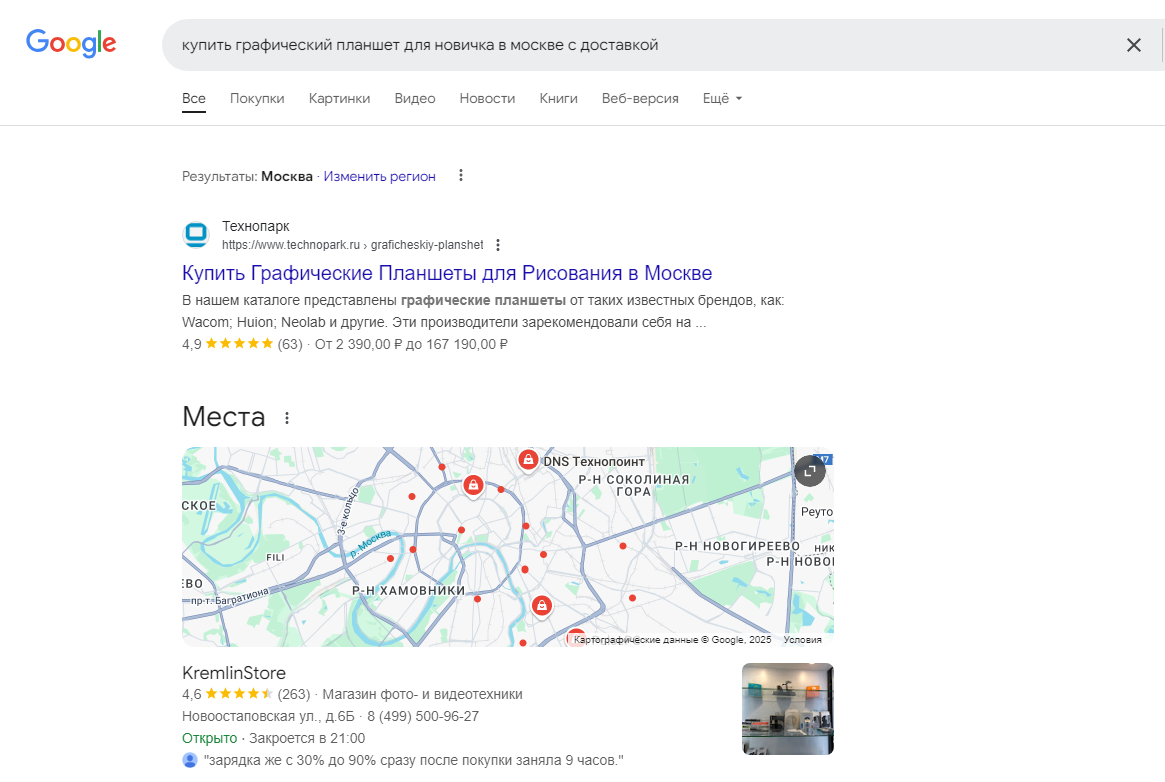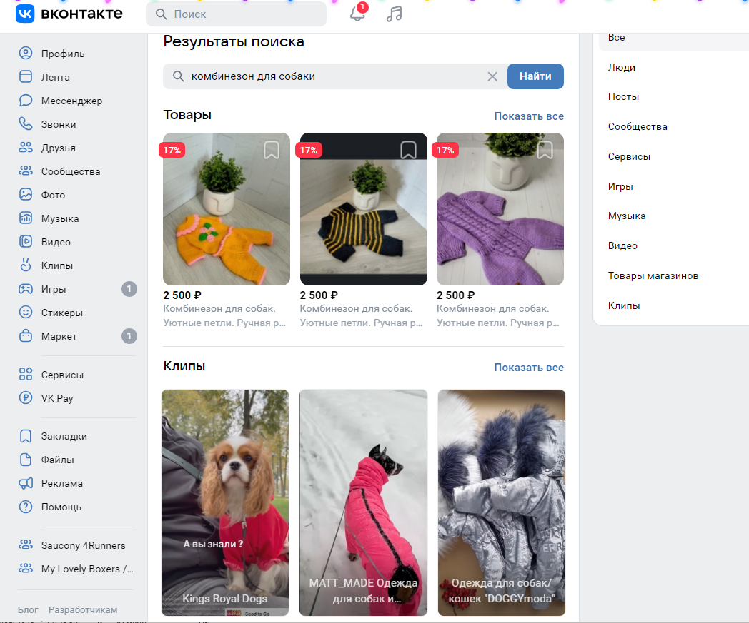 Результаты поиска по товарному запросу ВКонтакте, тренды сео 2025