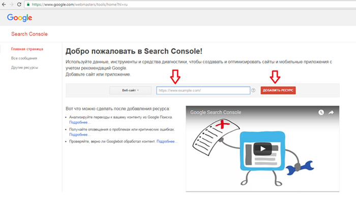 Добавление в Google осуществляется с помощью Google Search Console − бесплатного сервиса, являющегося аналогом Яндекс.Вебмастер.