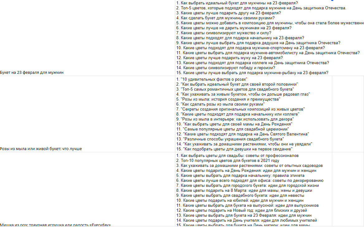 На основе собранных тысяч тем можно собрать частотность и написать новые статьи по тем темам, по которым уже при базовом парсинге есть частотность и потенциальный результат.