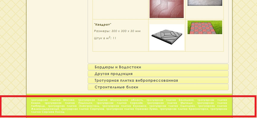 Например, такие ссылки бывают вшиты и замаскированы в шаблонах CMS (их можно встретить на каждом втором сайте Joomla и WordPress). Это не просто слова, это то, что мы регулярно находим на сайтах наших клиентов. Так, в одном шаблоне было около 8 исходящих ссылок с главной и по 6 на каждой внутренней странице. А клиент понять не мог, почему в ТОП попасть не получается.