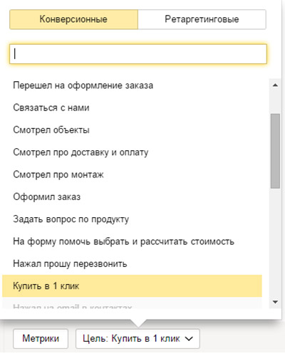 Проверим, посетители с какой поисковый системы совершали конверсии по цели «Купить 1 клик». Снова выбираем цель в выпадающем списке и смотрим конверсию: