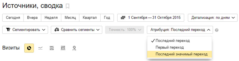 Для анализа конверсии лучше использовать атрибуцию «Последний значимый», чтобы выявить источник, с которого была конверсия.