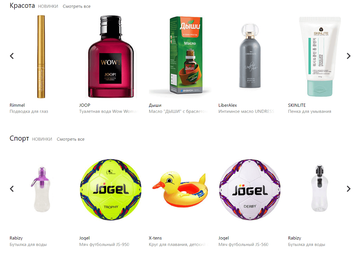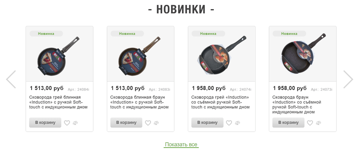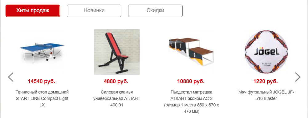 Кроме перечня товаров, можно показать позиции, на которые распространяется скидка, новые поступления, пользующиеся наибольшим спросом позиции.
