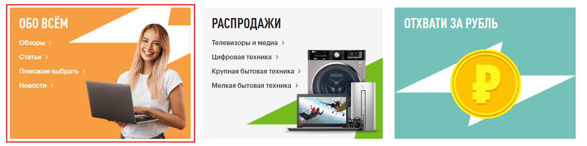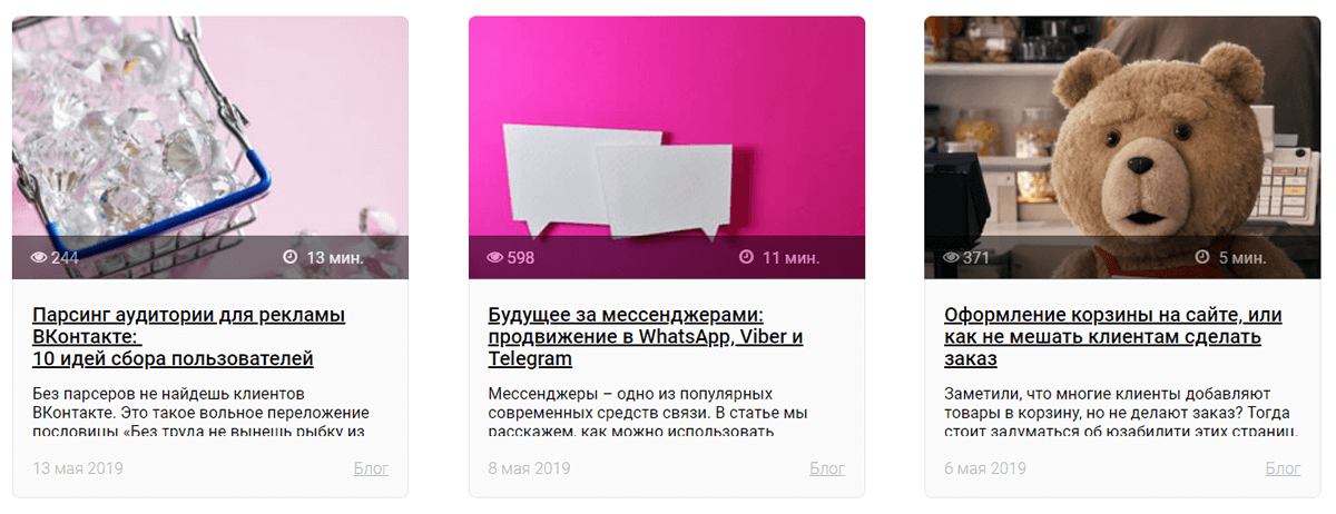 Для повышения юзабилити сайта важно размещать на нём статьи и другие полезные материалы. Ссылку на этот раздел стоит разместить на главной странице. Выглядеть это может так: