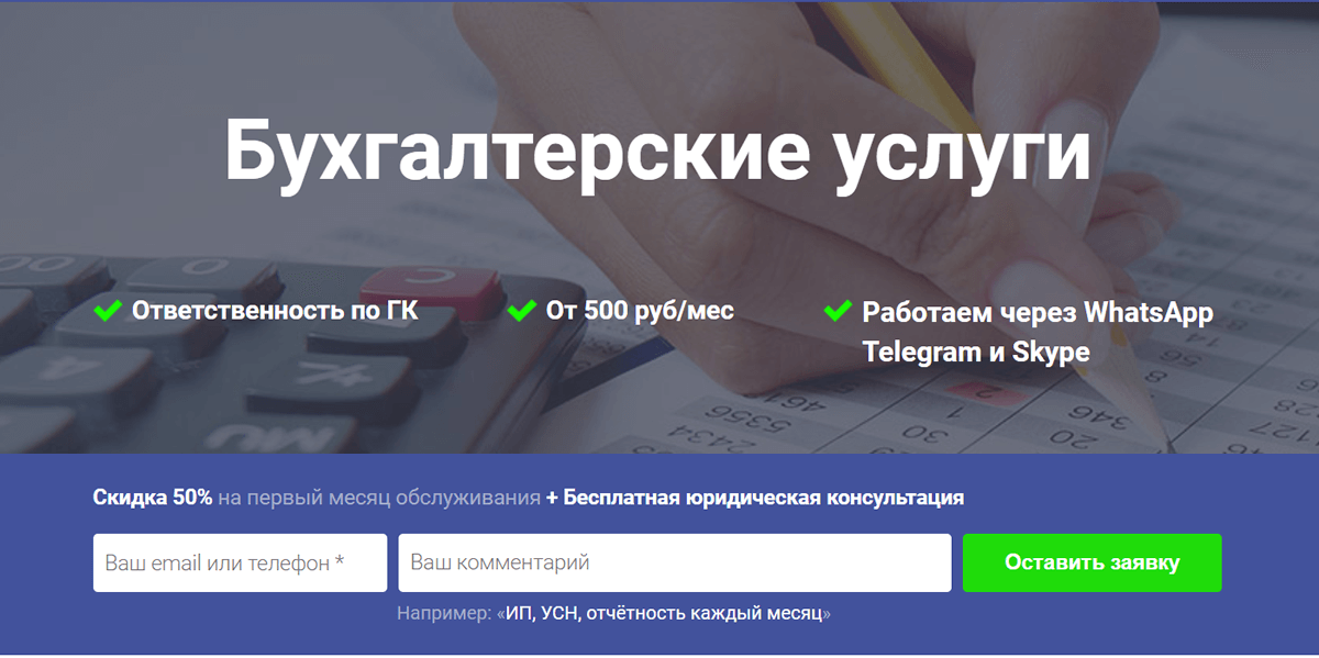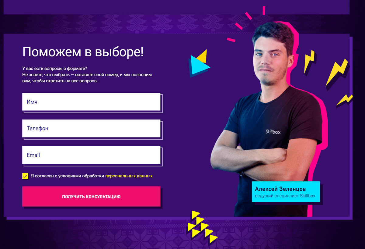 Консультационная форма пригодится тем гостям, которые просмотрели главную страницу до конца и хотят задать возникшие вопросы.