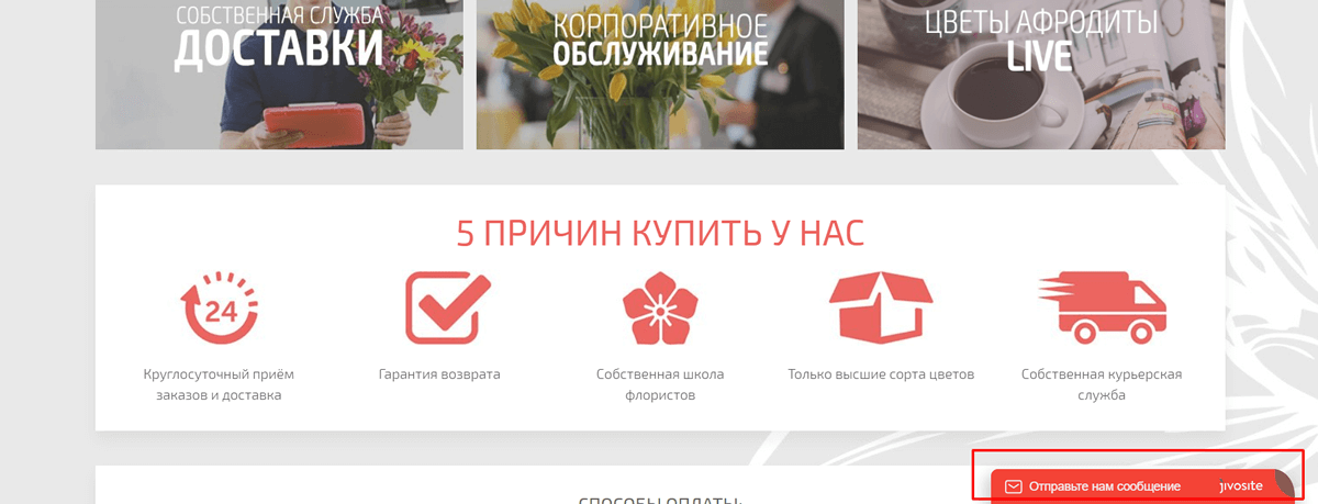 Лучше всего в этом блоке размещать каталог товаров или услуг. Он даёт возможность продемонстрировать, какие именно товары вы продаёте через сайт. Сделайте это выразительно, ярко, используйте оригинальные изображения.