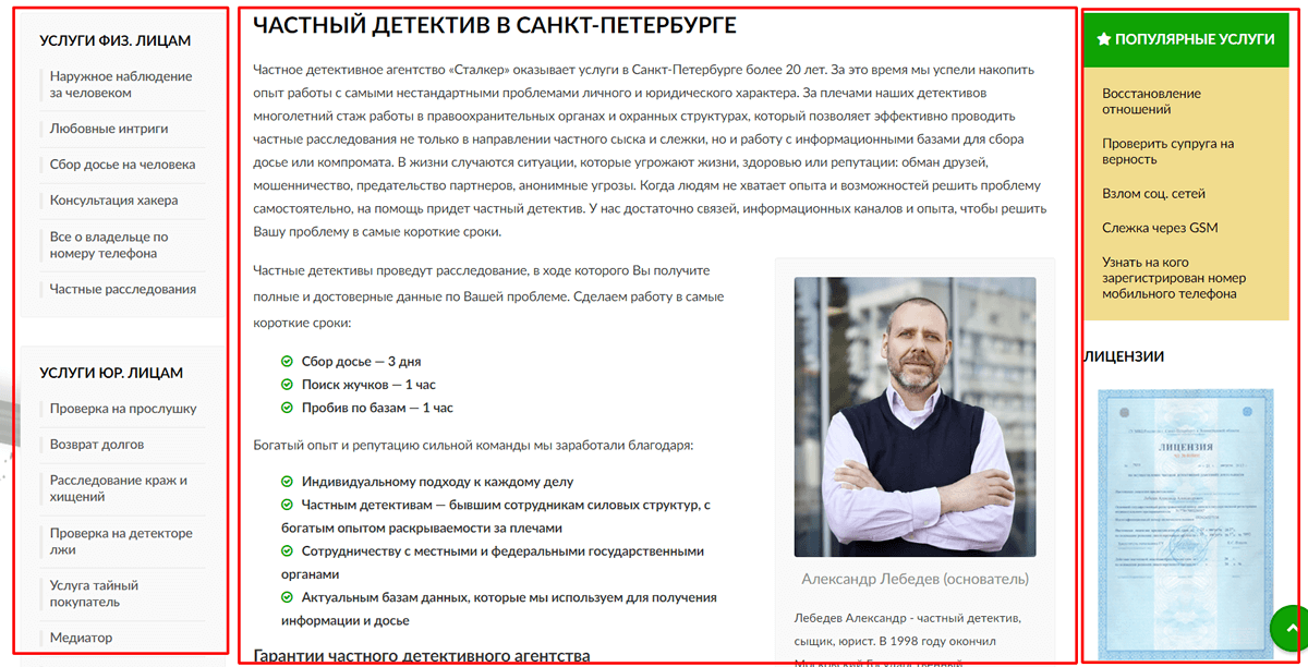 использование нескольких колонок с информацией − это делает страницу визуально тяжёлой, лучше использовать одну, максимум две колонки;